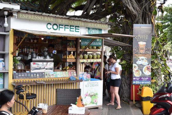 Branch Coffee Beach has almost a Bohemian air with regulars and visitors enjoying a specific ambiance created by the impressive Banyan tree, professional coffee with impressive tastes and such friendly service from Lek and New. If you can’t get one of the chairs at the front they have more seating, so don’t despair. Highly rates for uniqueness, ambience, friendly service and of course excellent coffee!